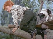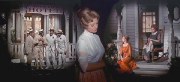 | The Music Man (1962) sees Robert Preston reprise his Broadway role as Professor Howard Hill, film-flam man extrordinaire. Shirley Jones plays Marion the librarian, and Ron Howard (right) plays her little brother. Buddy Hacket plays an old friend of Hill, who lives in River City, and Hermoine Gingold plays the mayor's wife. The school board is played by The Buffalo Bills. Stage director Morton DaCosta was able to give probably the best translation ever from Broadway to film with this wonderful cast. Even DP, Robert Burkes, had some magic up his sleeves, including shooting from the rafters (left) to give a beautiful prospective on the dance number Shapoopee, and something he called iris in/iris out (center) which had the same effect as a follow spot on a dark stage. | ||
