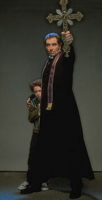 the twentieth century. The Blatty novel The Exorcist was based loosely on this case, and therefore so too was the film version of that story, which became a smash hit in the early 70's. This new Showtime movie is (in theory) a docudrama version of the exact same incident, similar in certain ways to the Exorcist, but using the real names and places from the post-war era, except for the name of the child, which has never been revealed. Timothy Dalton plays the exorcist. Bond, Father Bond, the only priest who sends back the wine. No, that was a cheap joke. Dalton actually ripped this performance directly out of the page of the Richard Burton hard-livin', hard-cussin' alcoholic priest in Night of the Iguana, or maybe the Richard Burton performance in Exorcist 2. Now that I think about it, Richard Burton acted like a drunken fallen priest in every movie. Now that I think about it still more, that wasn't acting. Well, with Dalton I'm pretty sure it is acting, and it's pretty darned lame - bellowing and talking in 90's slang. "OK, Beelzebub, fasten your seat belt. You want a piece of me, motherfucker. C'mon". I'm not kidding. Sadly enough, Father Bond actually said that stuff. |